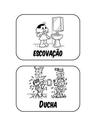 O documento apresenta a rotina diária de uma creche, incluindo refeições, atividades coletivas, brincadeiras, contos, músicas, educação física e momentos de oração e higiene.
