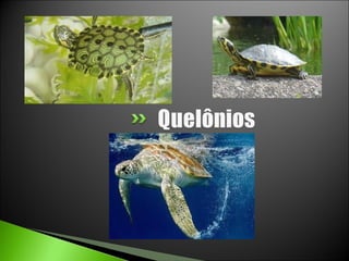 O documento resume as principais características dos répteis, incluindo informações sobre suas espécies, habitat, sistemas respiratório, digestivo e reprodutivo. Também aborda detalhes sobre os diferentes grupos de répteis como ofídios, quelônios e lacertílios.