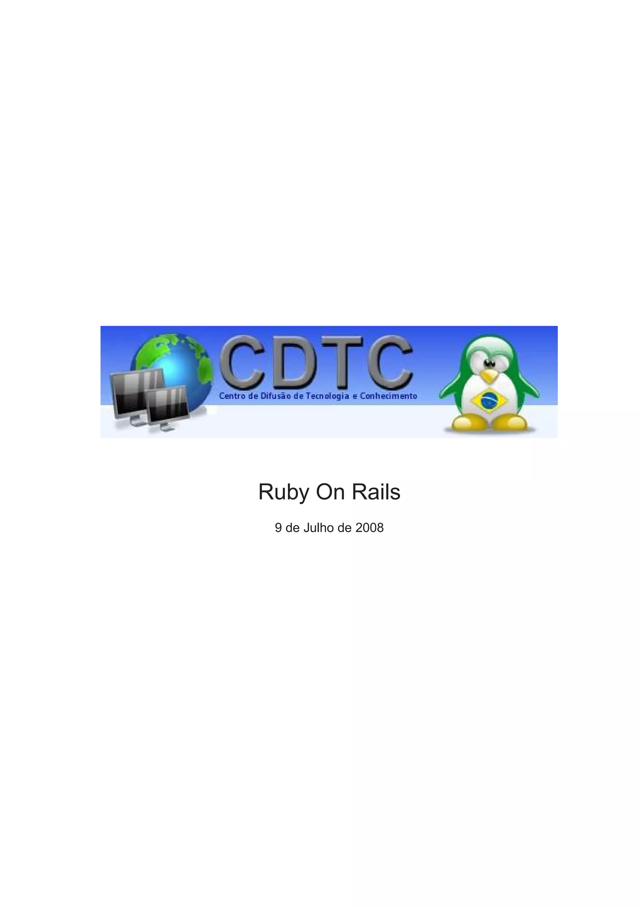 O documento apresenta um plano de ensino para um curso sobre Ruby on Rails. Apresenta tópicos como objetivo, público-alvo, pré-requisitos, cronograma e programação do curso. Também inclui informações sobre licença do conteúdo e instalação do framework Ruby on Rails.