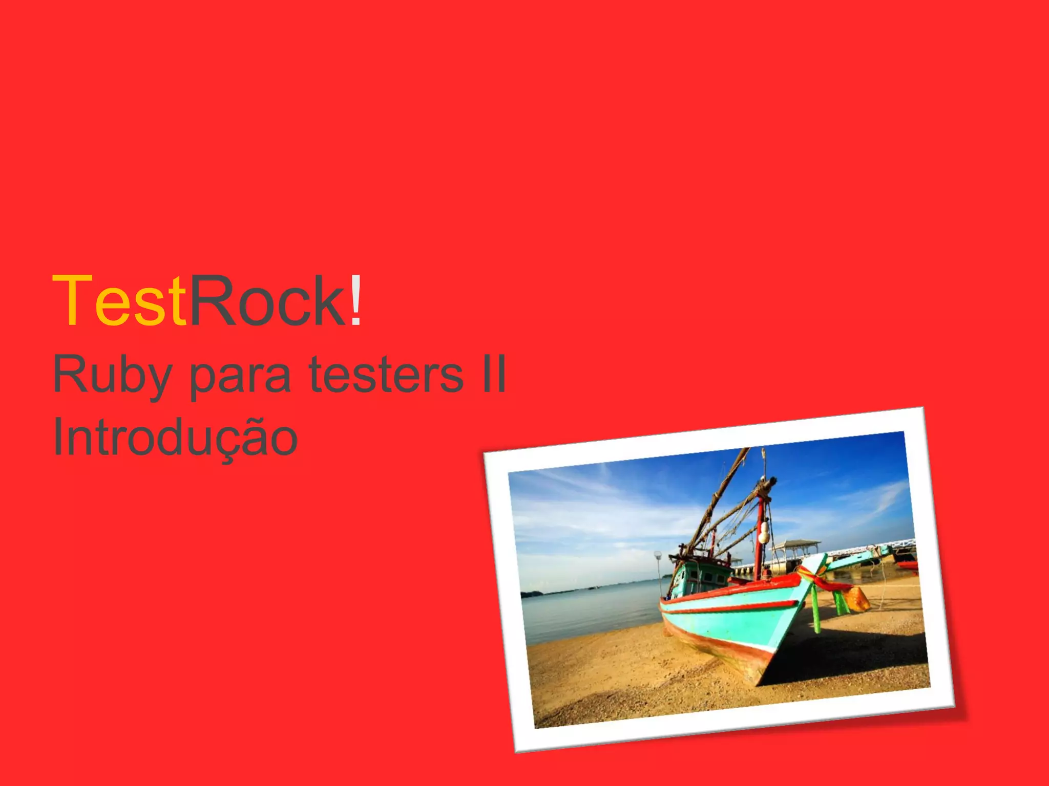 O documento apresenta uma introdução ao uso da linguagem Ruby para testes de software, abordando seus conceitos básicos e funcionalidades. Destaca a natureza orientada a objetos do Ruby, suas estruturas de dados como arrays e hashes, e fornece exemplos práticos de código. Também inclui links para mais materiais e recursos relacionados ao aprendizado do Ruby para testers.
