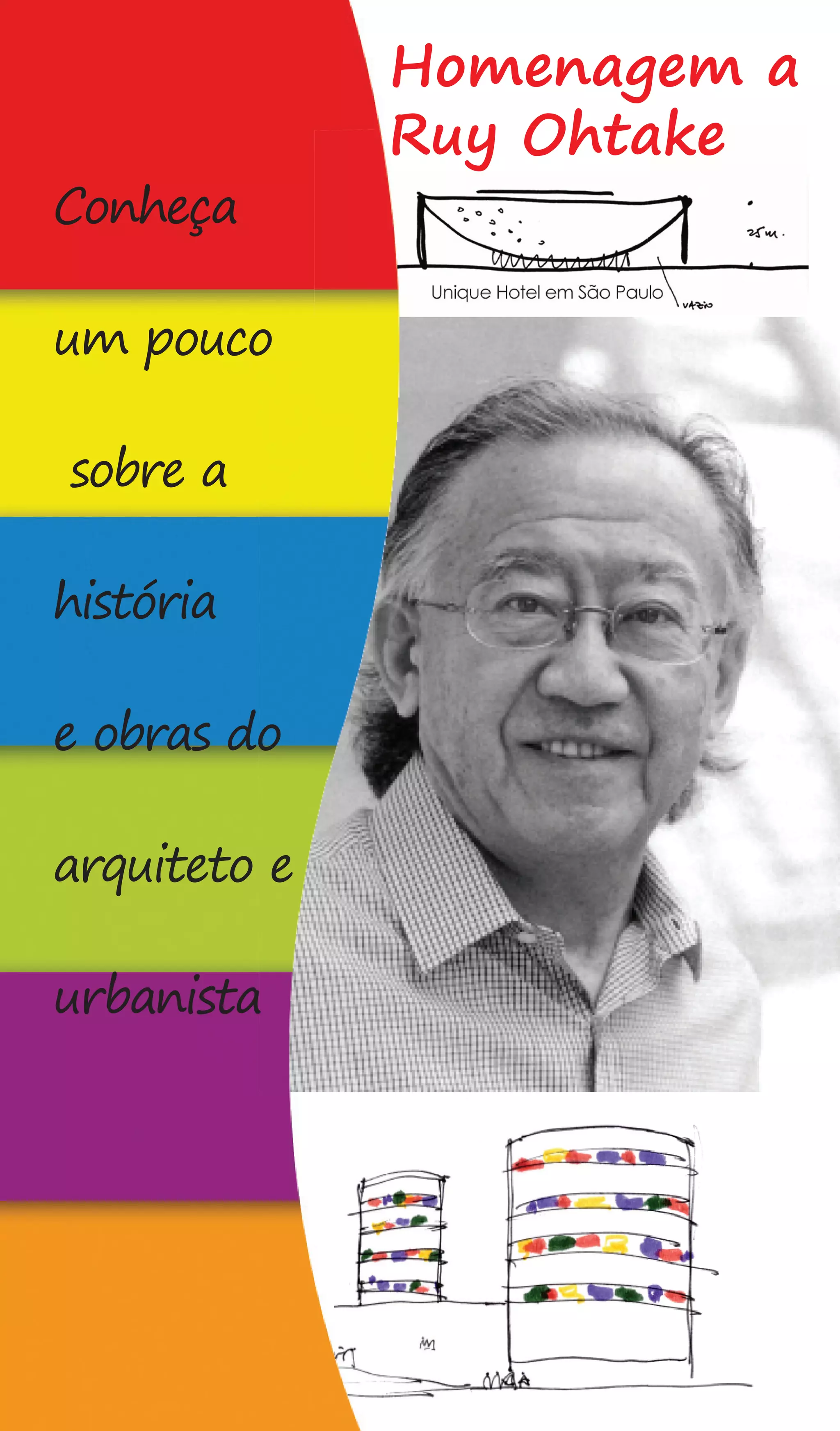 Este documento fornece um resumo da carreira e obras do arquiteto brasileiro Ruy Ohtake. Ele destaca seu estilo criativo que funde elementos da cultura japonesa, europeia e brasileira. O documento também descreve seu importante trabalho social na comunidade de Heliópolis em São Paulo, onde projetou habitações sociais em formato redondo que melhoraram a vida dos moradores. Por fim, apresenta depoimentos do próprio arquiteto sobre a importância deste trabalho social e sua visão para o futuro das cidades.