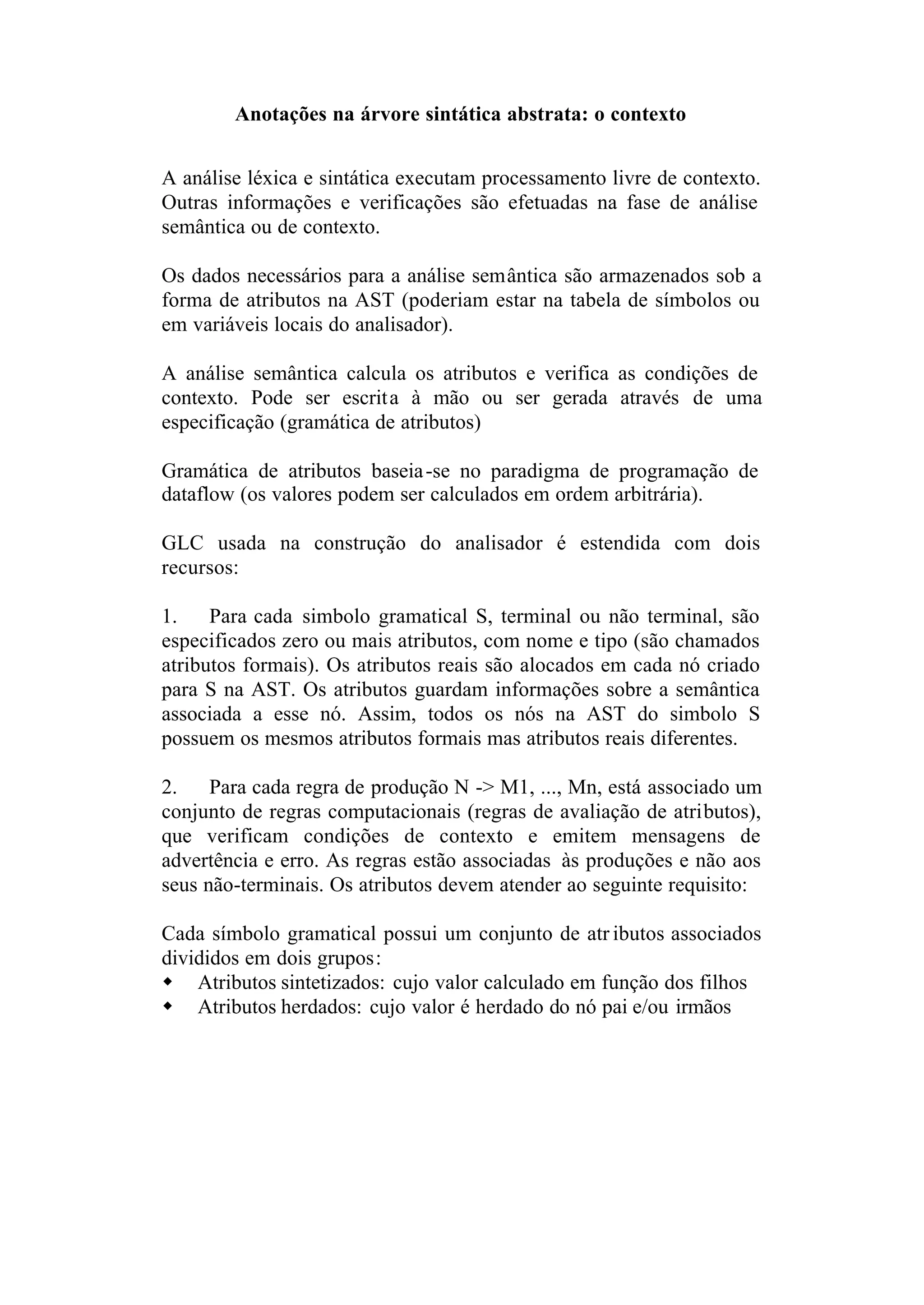 1. O documento discute a análise semântica de programas utilizando árvores sintáticas abstratas anotadas com atributos.