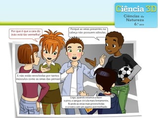 O documento descreve o sistema circulatório e a constituição e função do sangue. O sistema circulatório é composto pelo coração e vasos sanguíneos e permite a circulação do sangue pelo corpo. O sangue é constituído por plasma, glóbulos vermelhos, glóbulos brancos e plaquetas, que desempenham funções importantes como o transporte de oxigênio e nutrientes e a defesa contra infecções.