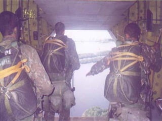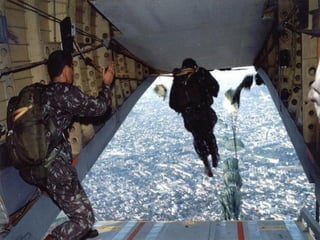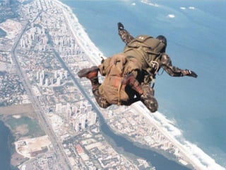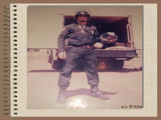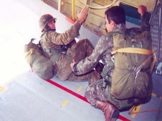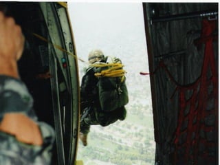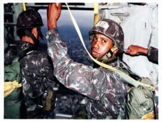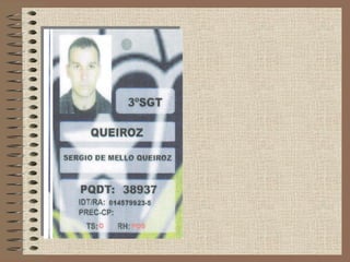 O documento descreve a carreira militar de S. Queiroz, incluindo seu trabalho como paraquedista e membro da Companhia de Polícia de Choque e do Comando de Operações Especiais do Exército Brasileiro, durante a qual ele tirou muitas fotografias de seu trabalho combatente.