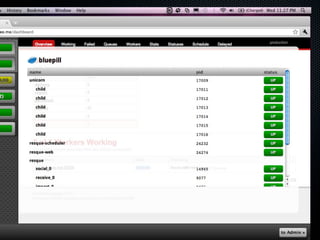 Este documento apresenta a empresa Softa e seu serviço Mailee.me. Detalha as experiências dos sócios Juan Maiz e Pedro Axelrud na programação e em projetos open source. Descreve as tecnologias utilizadas no desenvolvimento do software como serviço (SaaS) Mailee.me, incluindo Ruby on Rails, PostgreSQL, Resque e estratégias para manutenção do serviço, como backups, monitoramento e atualizações contínuas.