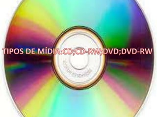 • CD-RW (CD Rewritable): CD regravável. Também tem a