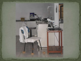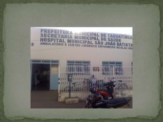 A descrição lista as salas e equipamentos de um posto de saúde, incluindo uma sala de vacinação, geladeira para remédios, sala de coleta para exames, cozinha, sala de emergência e esterilização, além de uma maca enferrujada na garagem.