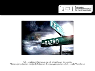 O documento discute a importância da fé e atividades religiosas para a saúde mental e física. Estudos mostram que a participação religiosa está associada a menores taxas de depressão, ansiedade e mortalidade. A fé pode fornecer paz interior e ânimo para lidar com as aflições da vida.