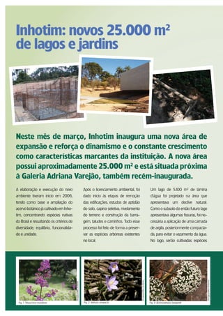 O documento descreve um novo jardim botânico no Instituto Cultural Inhotim com 25.000 m2 de lagos e jardins. A área foi projetada para ampliar a coleção botânica já existente em Inhotim, com ênfase em espécies nativas do Brasil. A nova área servirá como base para ações educativas ambientais e futura expansão artística.