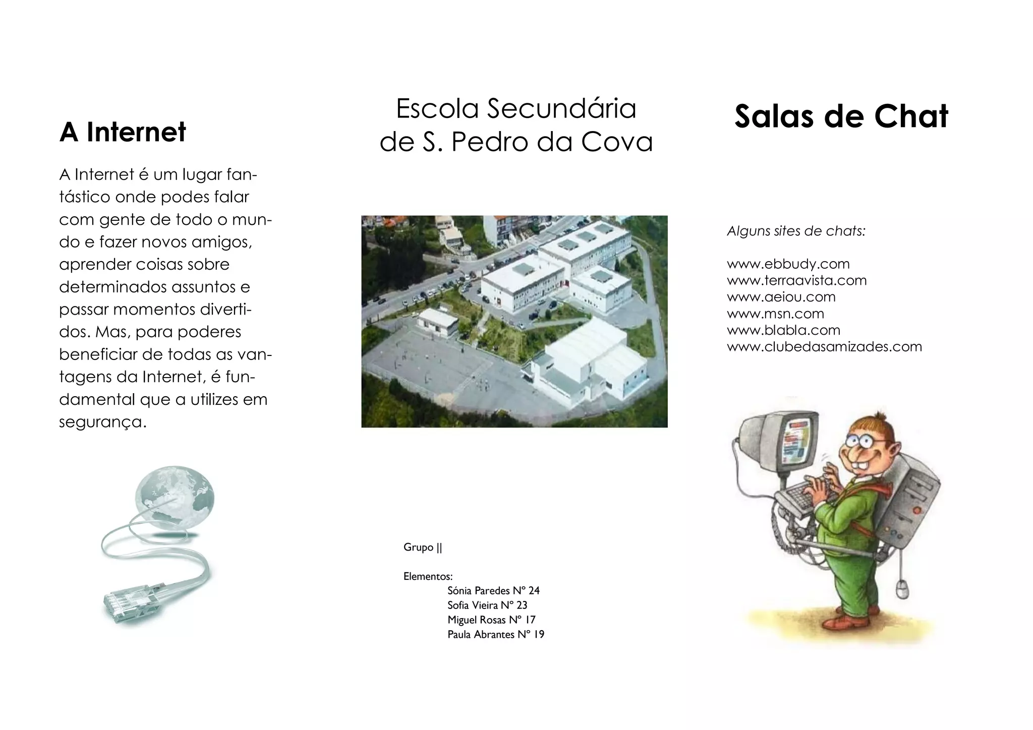 [1] O documento discute as vantagens e desvantagens do uso de salas de bate-papo online, bem como dicas de segurança para crianças e adolescentes. [2] Algumas vantagens incluem a capacidade de conversar com pessoas de todo o mundo e fazer novos amigos, enquanto os riscos incluem a divulgação de informações pessoais e encontros com estranhos. [3] O documento fornece conselhos como nunca fornecer dados pessoais online e desconfiar de convites para salas de bate-papo privadas.