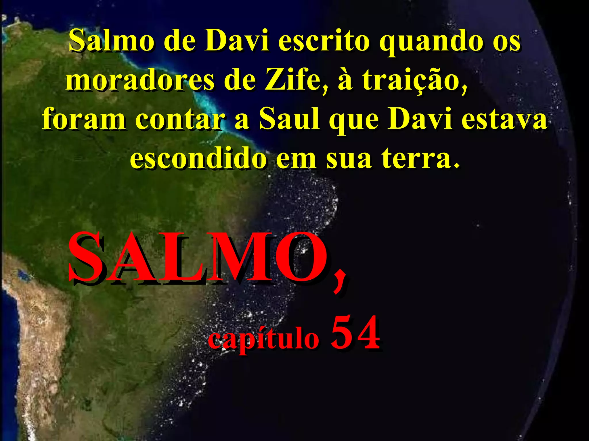 O salmo 54 fala sobre Davi pedindo ajuda a Deus contra inimigos cruéis que procuravam destruir sua vida. Jesus se apresenta como a luz do mundo e diz que quem o segue não andará nas trevas, mas terá a luz da vida. Ele afirma que veio do céu e os fariseus não o conhecem nem a Deus.
