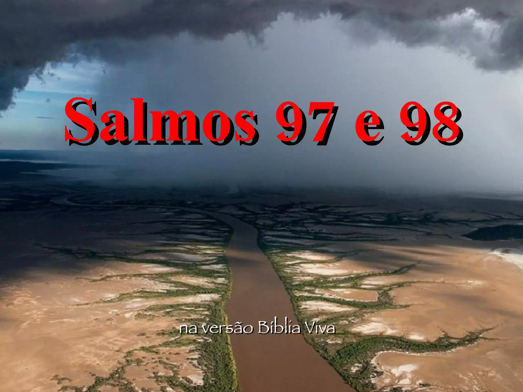 Os Salmos 97 e 98 celebram a justiça e soberania de Deus sobre toda a terra. Eles descrevem como Deus destrói os inimigos com fogo e ilumina o mundo com relâmpagos, fazendo as montanhas derreterem. Os salmos pedem que os justos se alegrem no Senhor e cantem louvores a Ele, que anunciou sua salvação às nações e julgará a terra com perfeita justiça.