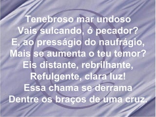 O poema descreve um pecador navegando em um mar tempestuoso, temendo o naufrágio, mas vendo uma luz brilhante vinda de uma cruz, que representa Cristo e a salvação. O pecador deseja se afastar deste mundo impuro e desfrutar da paz e tranquilidade encontradas nos justos de Cristo, que mostrou Seu amor na cruz e cujos remidos brilharão na glória eterna.