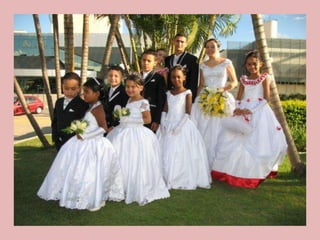 O documento lista 6 casais que se casaram e seus respectivos nomes, além de mencionar uma festa no final.