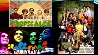 O documento descreve a evolução da música popular brasileira desde o período colonial até os movimentos musicais da segunda metade do século XX, incluindo o surgimento do lundu, modinha, choro, samba, samba-canção, bossa nova, jovem guarda, tropicalismo e MPB.