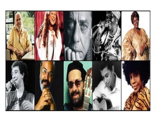 O samba surgiu da mistura de estilos musicais africanos e brasileiros. Ele se espalhou pelo Brasil nas décadas de 1930 e 1940 através do rádio e dos carnavais, com compositores como Noel Rosa, Dorival Caymmi e Ary Barroso. O samba evoluiu em diferentes estilos como o samba-enredo, samba de partido alto e samba de gafieira.