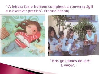 O documento convida para o III Saráu Literário da Escola Estadual Bernardo Sayão em 29 de abril às 19h, que homenageará a escritora Sinvaline Pinheiro. Ele cita frases sobre a importância da educação da juventude e traz um pequeno texto sobre a aventura da leitura.