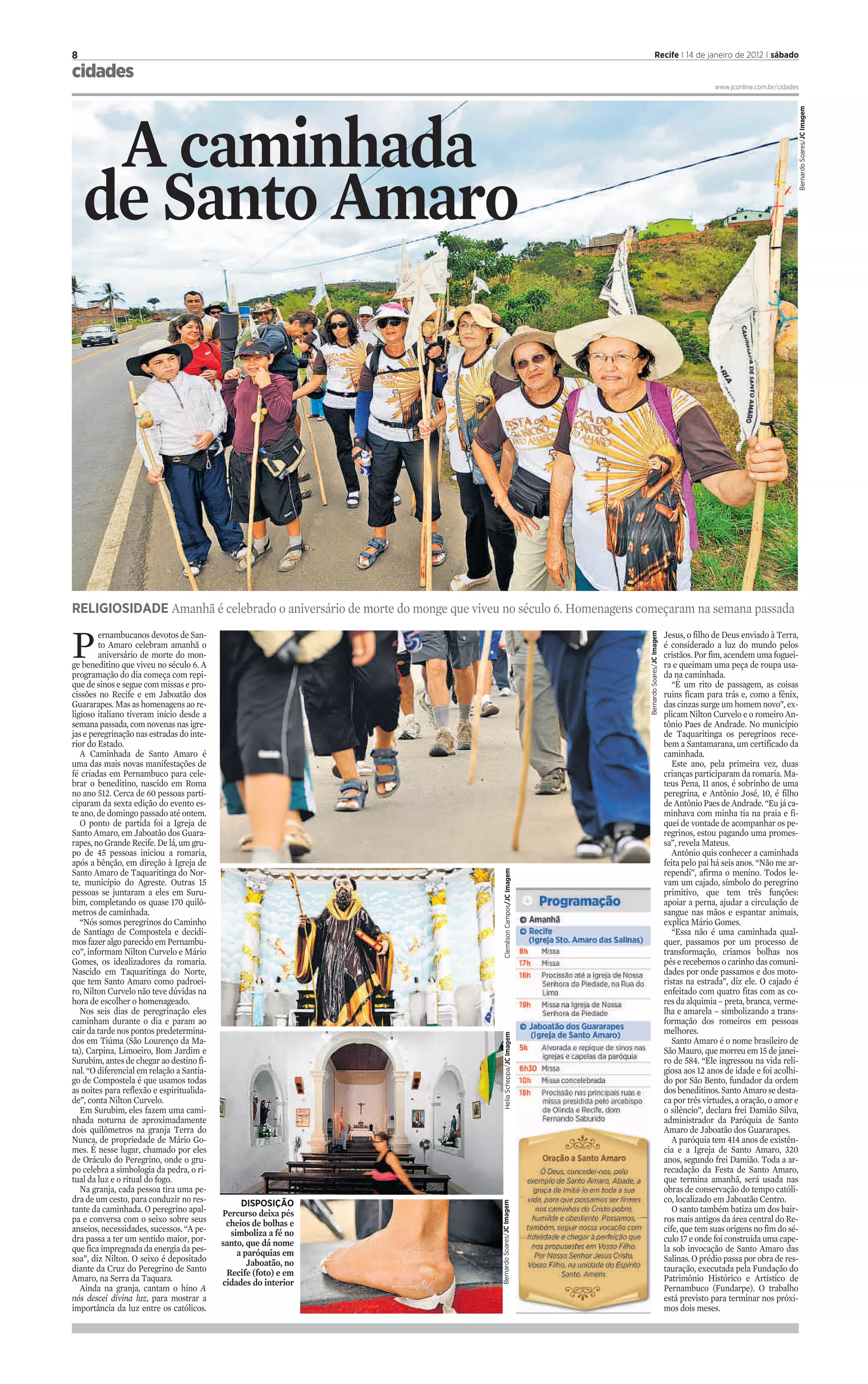 A Caminhada de Santo Amaro é uma romaria criada em Pernambuco para celebrar o monge Santo Amaro, nascido em Roma no ano 512. Cerca de 60 pessoas participaram da sexta edição do evento este ano, caminhando 170 quilômetros em seis dias entre igrejas dedicadas a Santo Amaro no Grande Recife e no Agreste. Os romeiros refletem e buscam transformação espiritual durante a jornada.