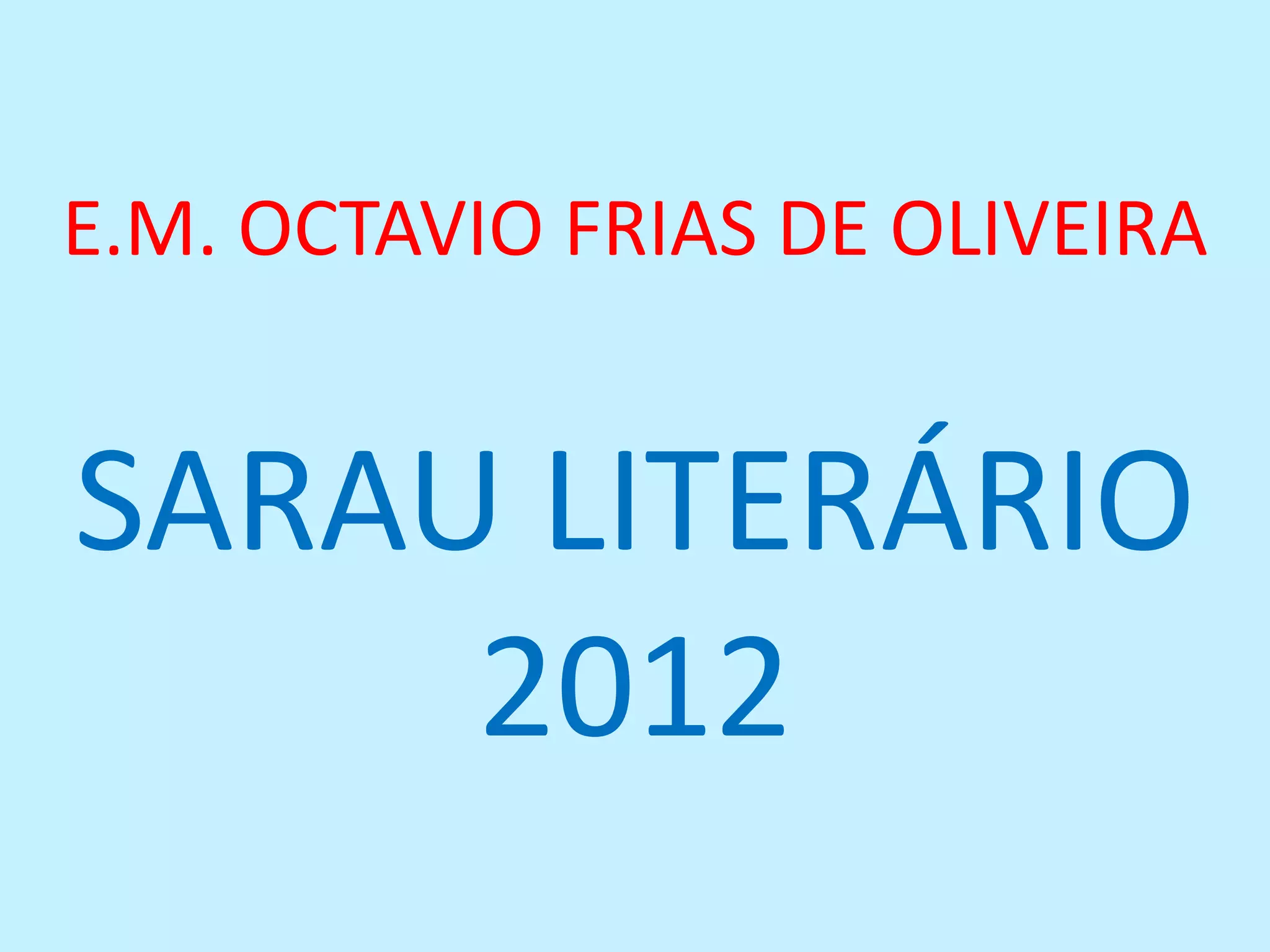 O documento descreve o sarau literário de uma escola para comemorar seu aniversário, incluindo objetivos como homenagear a escola e melhorar a convivência entre os alunos. Cada série lerá e se engajará com obras literárias diferentes, e apresentará músicas, danças, teatro ou poesias relacionadas.
