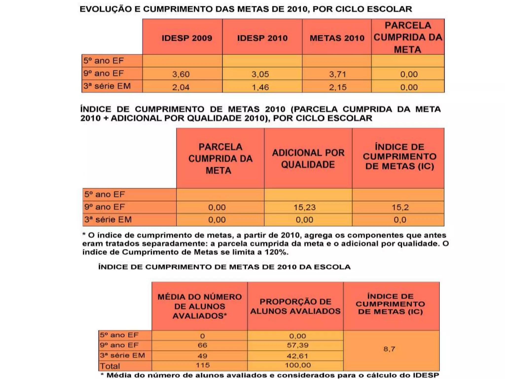 1) Índice de Cumprimento de Metas (IC), que analisa o alcance de metas de curto e longo prazo, combinando a Parcela Cumprida da Meta e o Adicional por Qualidade