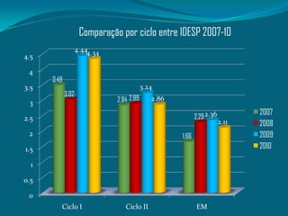 O documento descreve os indicadores utilizados para avaliar o desempenho escolar: