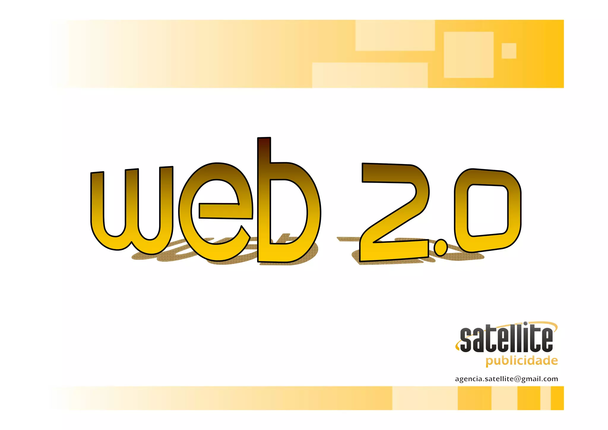 O documento descreve os principais conceitos da Web 2.0, incluindo a ênfase na interatividade e colaboração entre usuários, com sites sendo criados e mantidos pelos próprios usuários ao invés de equipes editoriais. A Web 2.0 também dá poder aos usuários para personalizar seu conteúdo e experiência online.