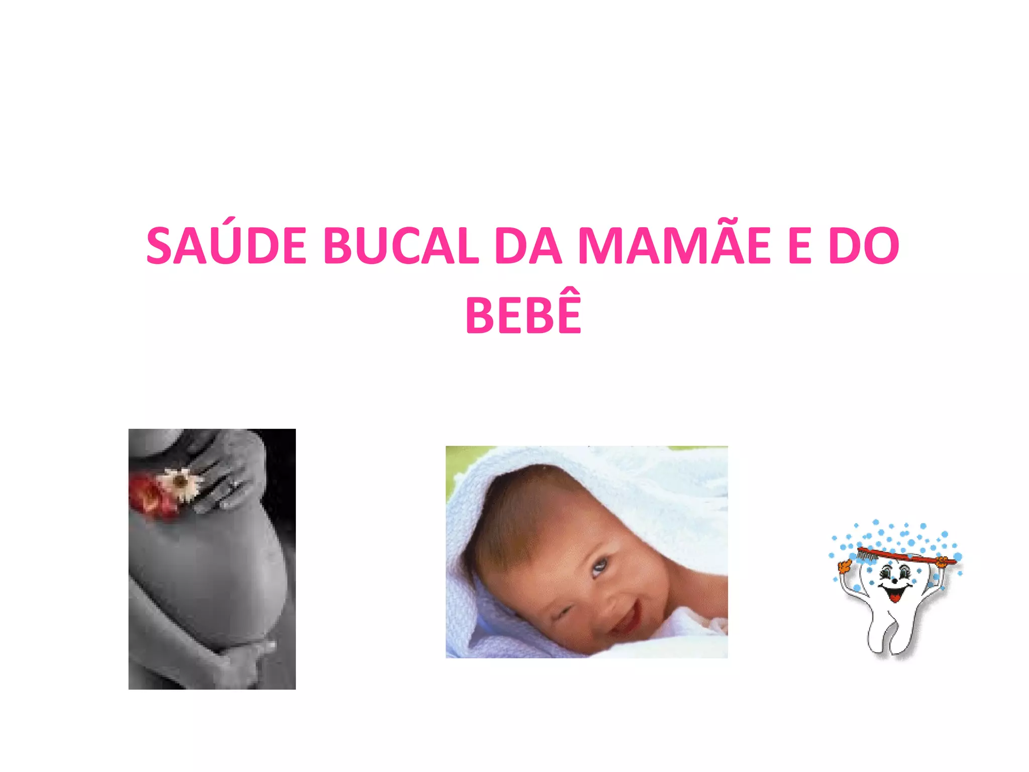 O documento discute a importância da saúde bucal da gestante e do bebê. A gestação traz mudanças que aumentam o risco de cáries e problemas gengivais se a higiene não for reforçada. Após o nascimento, é essencial iniciar bons hábitos de escovação na criança e evitar o uso prolongado de chupeta ou mamadeira com açúcar à noite.