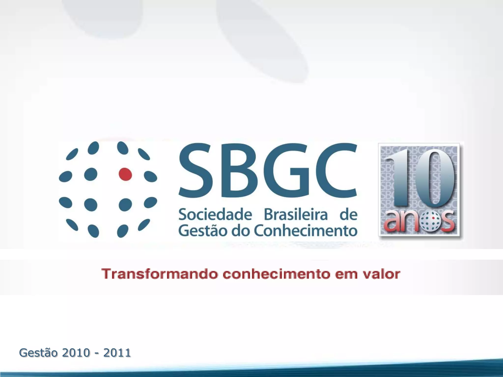 Este documento apresenta o cronograma de workshops e oficinas sobre gestão do conhecimento e redes sociais que serão realizados pela SBGC entre março e agosto de 2011. O primeiro evento será um workshop sobre GC&I e redes sociais com o tema "Empresas do Século XX, Pessoas do Século XXI: A Economia da Colaboração" em 22 e 23 de março. Outros workshops abordarão tópicos como gestão documental, colaboração e ferramentas de GC 2.0. As atividades visam prom