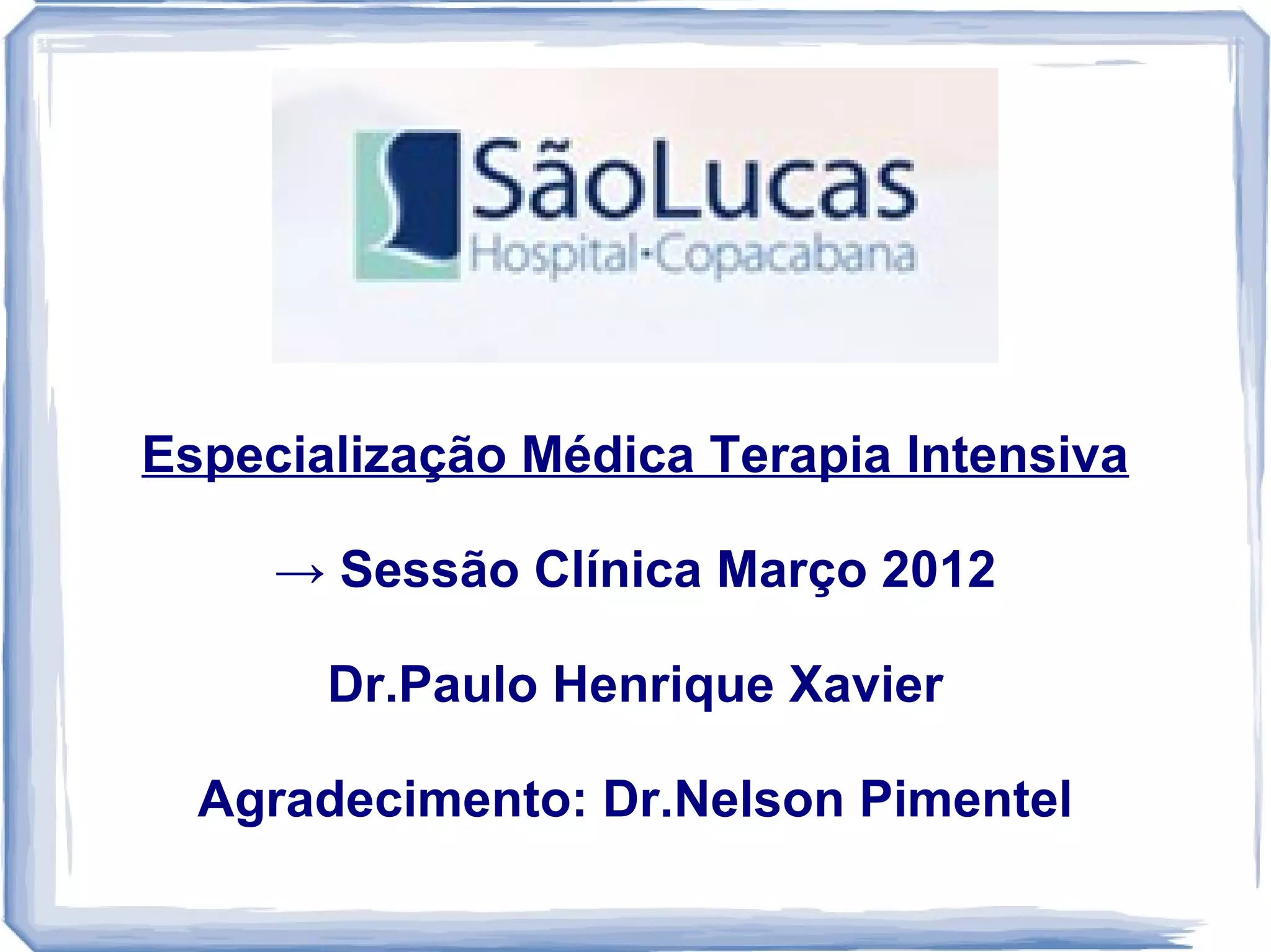 O documento relata o caso de um paciente de 52 anos admitido no CTI com dispneia progressiva e tosse seca. Exames identificaram padrão inflamatório difuso nos pulmões. Biópsia pulmonar confirmou doença pulmonar intersticial, fornecendo diagnóstico específico para guiar o tratamento.