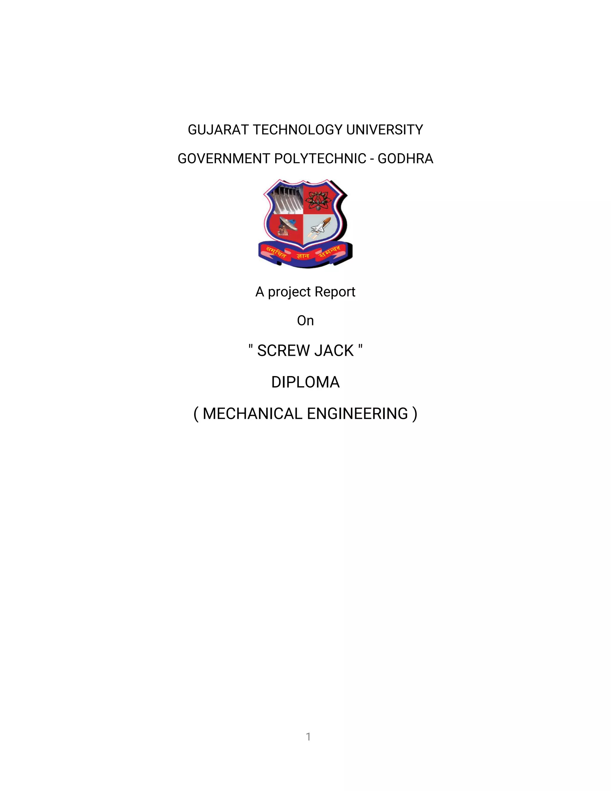 Este relatório de projeto descreve o design de um jack de parafuso. Ele inclui uma descrição dos componentes principais de um jack de parafuso, como o parafuso, a porca e a peça cúpula. O relatório também contém cálculos de design, desenhos 3D do jack projetado no Pro-E e escopo para melhorias futuras.