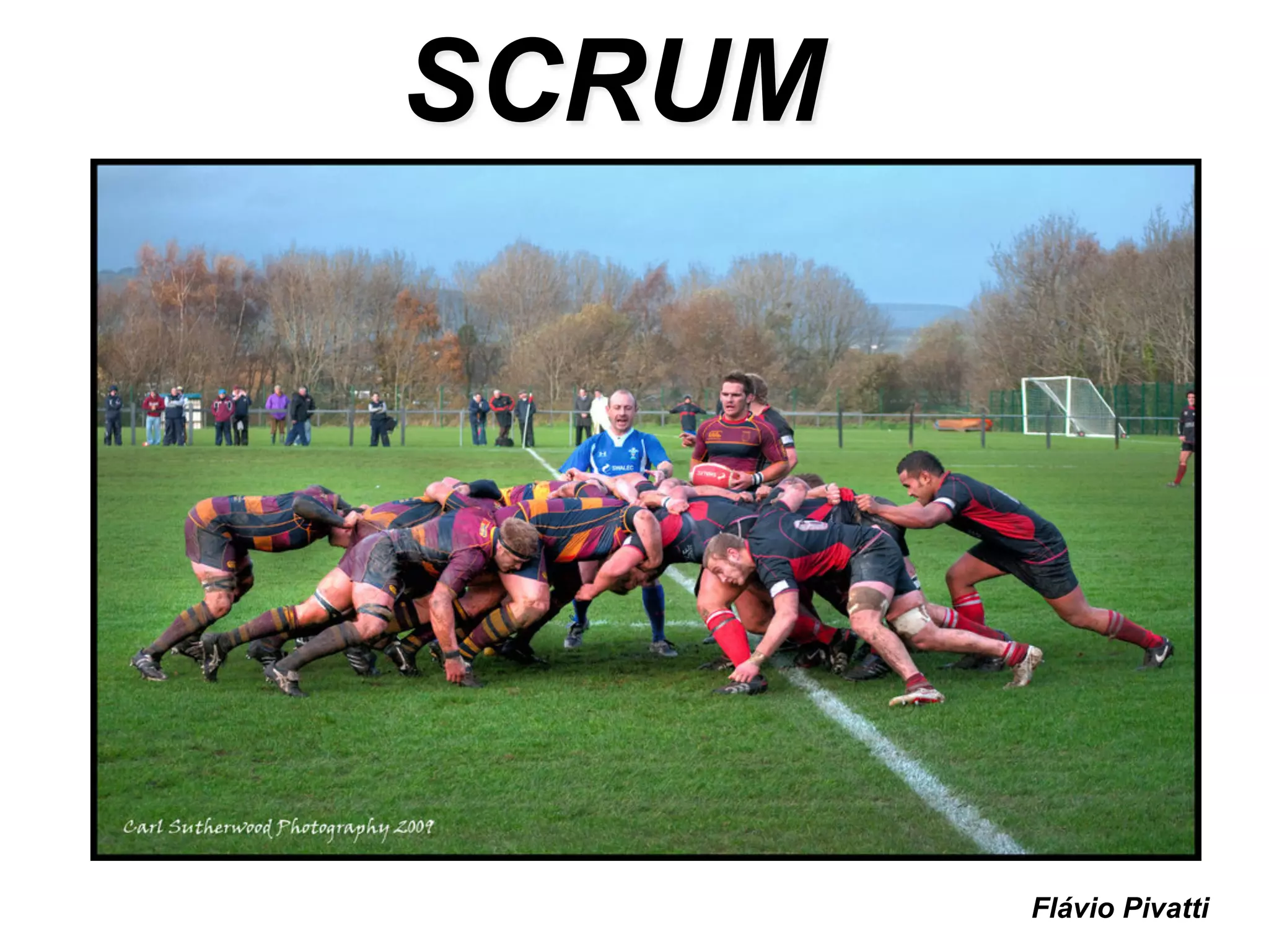 Scrum é uma metodologia ágil para desenvolvimento de projetos que surgiu nos anos 1990. Ela propõe entregas mais rápidas de projetos complexos através de papéis como Product Owner, Scrum Master e Scrum Team, artefatos como Product Backlog e Sprint Backlog, e cerimônias como Sprint Planning, Daily Scrum e Sprint Retrospective.