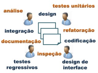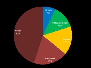 O documento apresenta os resultados de uma pesquisa sobre a adoção do framework Scrum. A pesquisa mostra que a maioria dos entrevistados relatou melhorias na qualidade, motivação, responsabilidade e produtividade após a adoção do Scrum. Quase todos concordaram que continuariam usando Scrum se tivessem escolha.