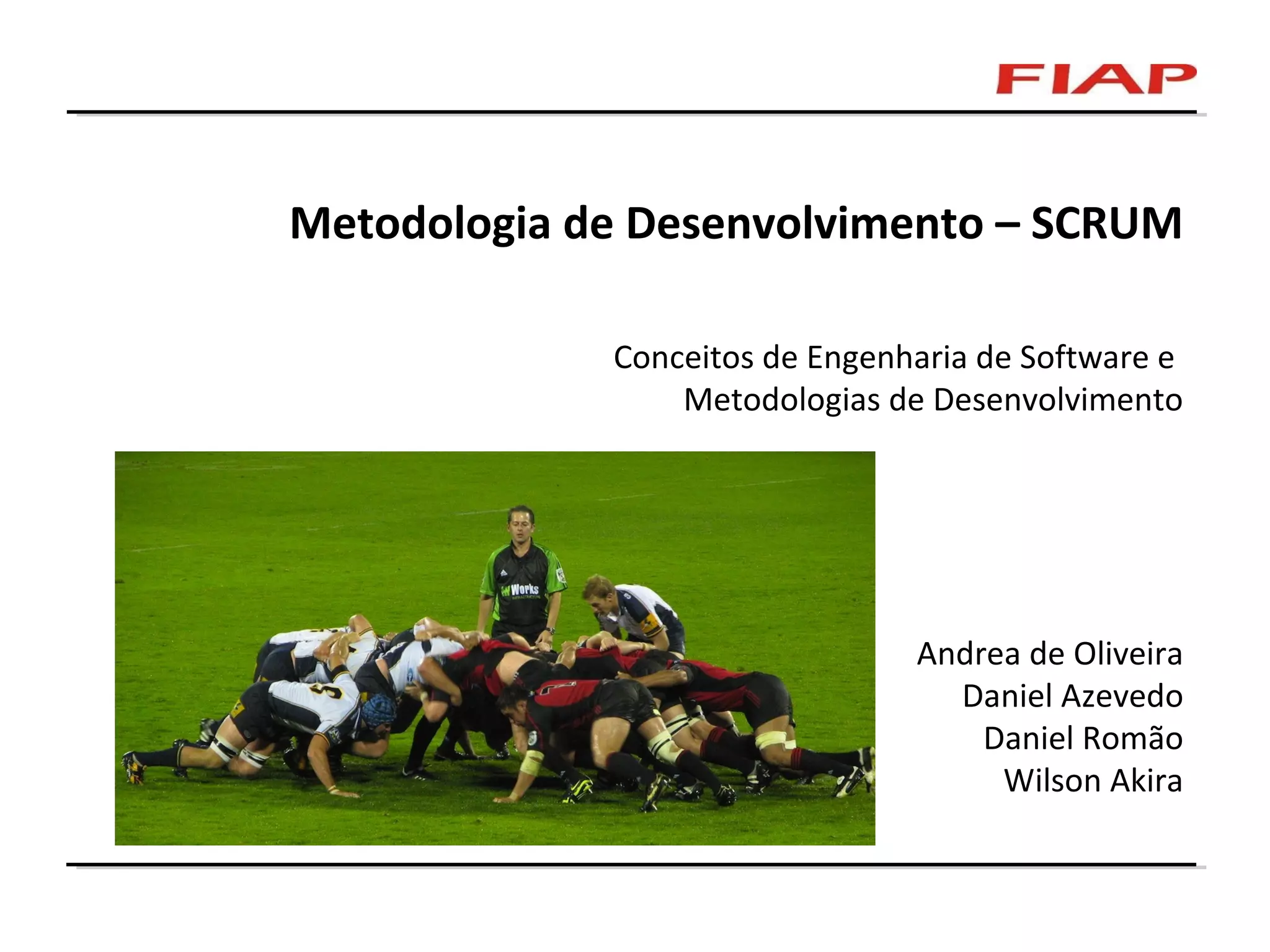 O documento descreve os principais conceitos e eventos da metodologia Scrum para desenvolvimento de software. Scrum é um framework ágil que utiliza Sprints curtas, eventos formais como reuniões diárias e revisões, e artefatos como Backlog do Produto e do Sprint para que equipes entreguem valor de forma incremental. O documento explica os papéis de Product Owner, Scrum Master e Time de Desenvolvimento e como eles interagem nos processos e eventos de Scrum.