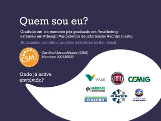 O documento descreve os conceitos básicos do framework Scrum, incluindo: (1) Scrum não é uma metodologia ou receita de bolo pronta, mas sim um framework iterativo e incremental; (2) Os papéis no Scrum são o Product Owner, Scrum Master e Time; (3) O fluxo do Scrum inclui planejamento, sprints diárias e reuniões para revisão e retrospectiva.
