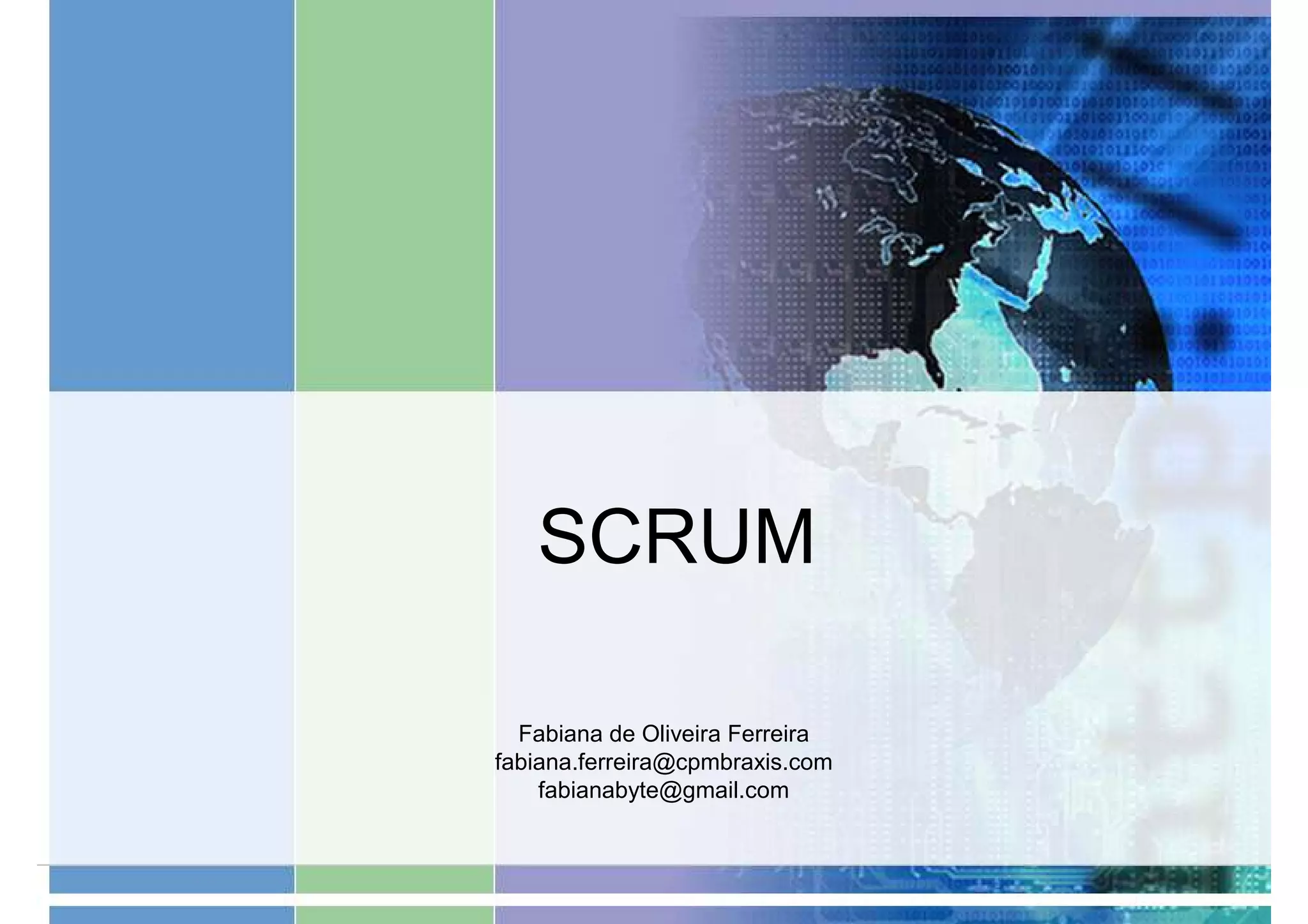 Scrum é um framework ágil para gestão e desenvolvimento de projetos. Origem no rugby, utiliza sprints, reuniões diárias e artefatos como product backlog para entregar valor de forma incremental. Equipes self-organized constroem software funcionando em colaboração estreita com clientes.