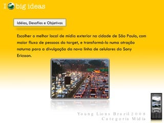 A Sony Ericsson queria lançar uma nova linha de smartphones de forma impactante. Eles projetaram fotos enviadas pelo público em uma tela gigante de 1.800 m2 por 30 noites para divulgar os novos telefones e seu sistema de câmera Cybershot. Mais de 300.000 fotos foram enviadas durante a promoção viral.