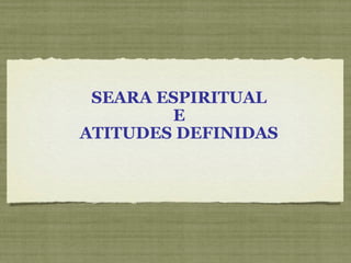 O documento discute atitudes definidas no campo espiritual. Afirma que não há tempo específico para semear ou colher e que todos podem trabalhar na lavoura espiritual. Também enfatiza a necessidade de agir contra o mal e cultivar a fé verdadeira para o progresso moral.
