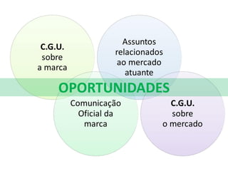 O documento detalha a atuação da Trianons em mídias sociais e sua estratégia de engajamento com clientes, apresentando dados de atendimento e projetos desenvolvidos. A análise inclui indicadores de sucesso em diferentes plataformas, além de sugestões de melhorias para aumentar o engajamento e a presença digital da marca. Também menciona oportunidades de criação de conteúdo e ações de marketing para fomentar a interação com o público.