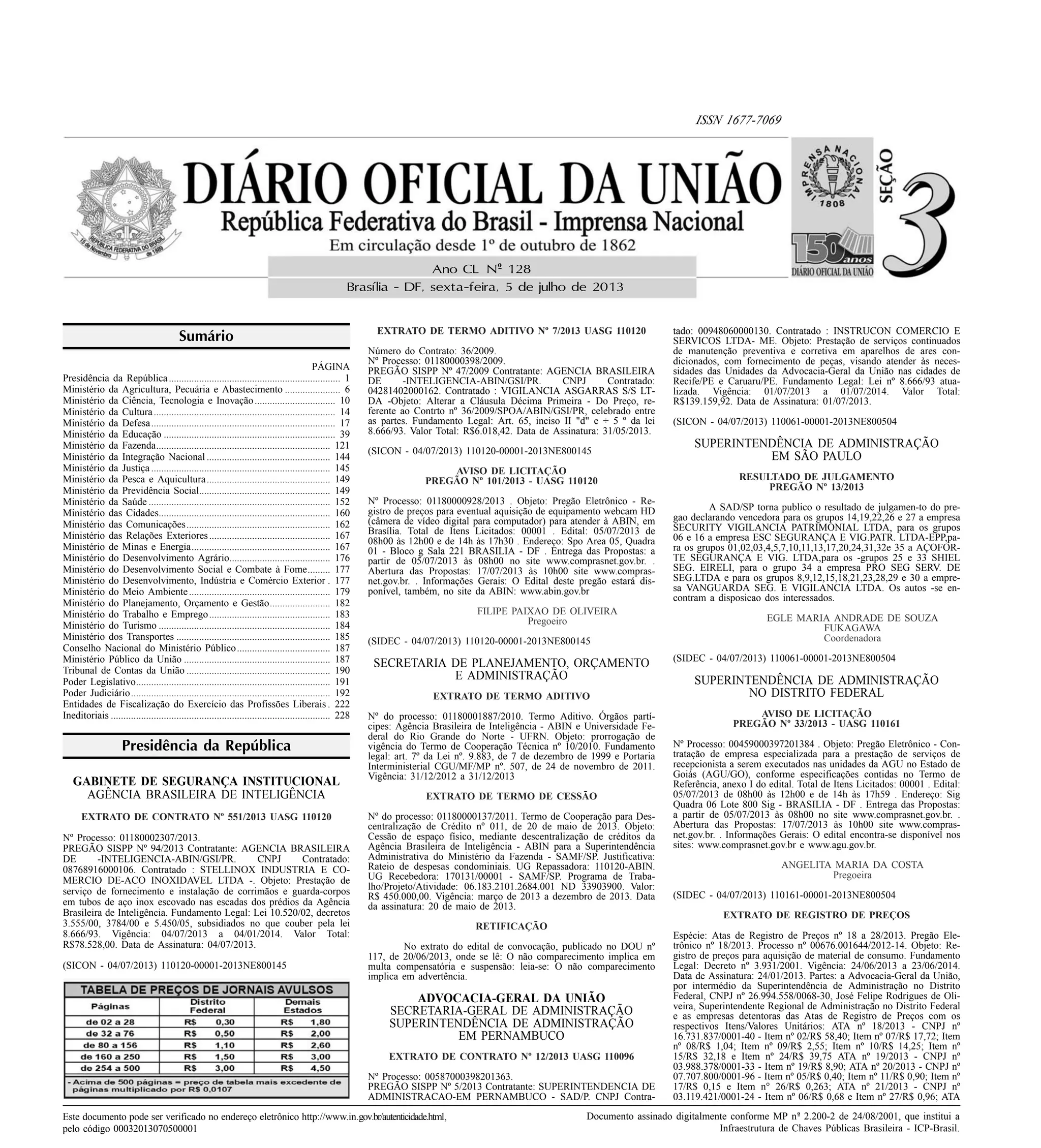 Brasília - DF, sexta-feira, 5 de julho de 2013