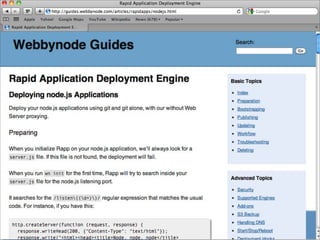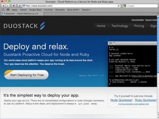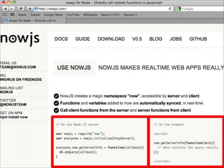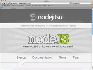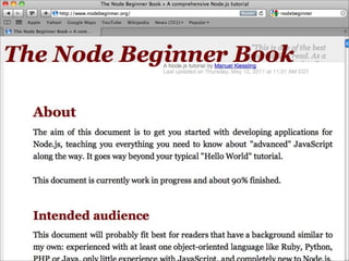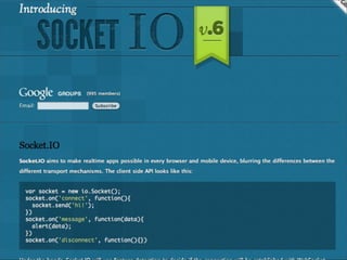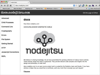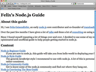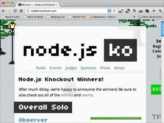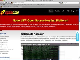 O documento discute a ascensão do Node.js e as limitações das tecnologias da web tradicionais para lidar com alta concorrência e escalabilidade. O Node.js surgiu para lidar com E/S de forma não bloqueante e baseada em eventos, permitindo que servidores suportem milhares de conexões simultâneas de forma eficiente.