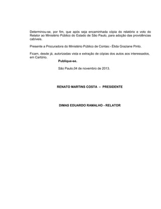 3) O relatório e voto do relator serão encaminhados ao Ministério Público para adoção de providências.