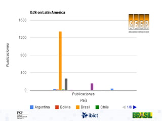 O documento aborda a missão do IBICT em promover a comunicação científica no Brasil por meio de publicações de acesso aberto, destacando a evolução da editoração eletrônica de periódicos científicos desde os anos 90. Apresenta desafios como a falta de capacitação e recursos, além de sugerir melhorias na infraestrutura e tecnologia para facilitar a publicação e visibilidade da produção científica nacional. O IBICT atua na capacitação de editores e na implementação do sistema SEER, enfatizando a importância do acesso livre e da colaboração entre comunidades acadêmicas.