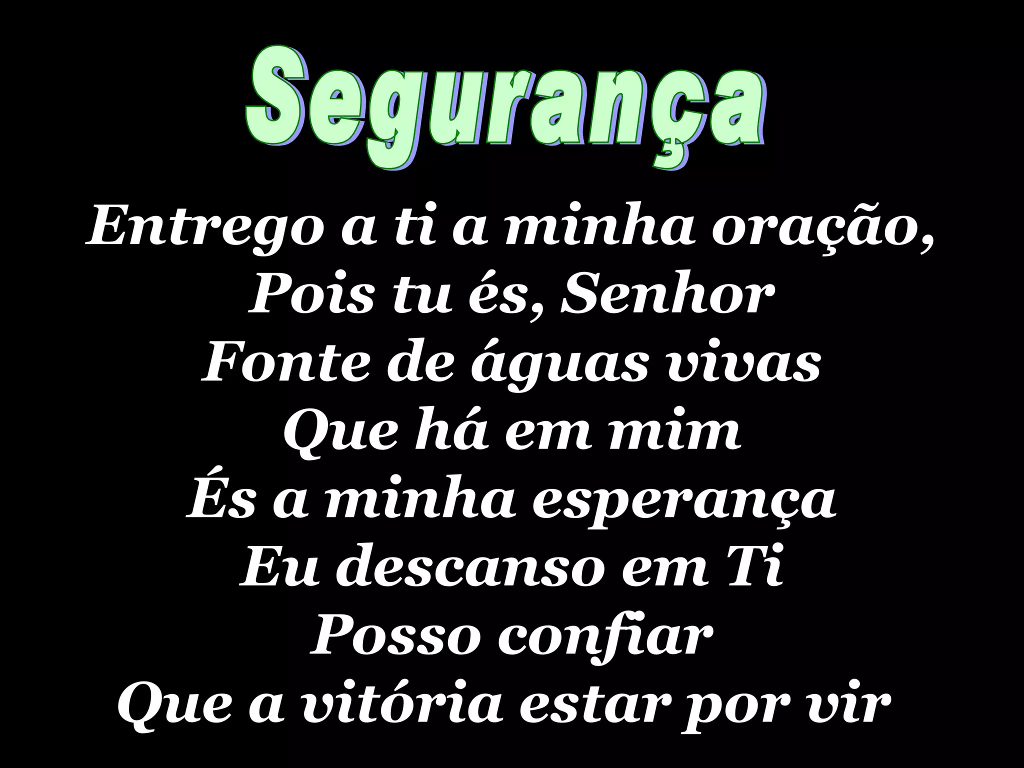 Entrego a tia minha oração, Pois tu és, Senhor Fonte de águas vivas Que há em mim És a minha esperança Eu descanso em Ti Posso confiar Que a vitória estar por vir Segurança