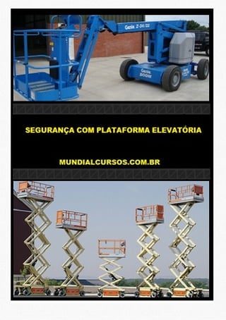 Este documento discute procedimentos de segurança para operação de plataformas elevatórias. Ele explica que os operadores devem usar equipamentos de proteção individual como arnês de segurança. Também destaca a importância de seguir regulamentações como a NR 35, que estabelece requisitos para trabalho em altura de forma a garantir a segurança dos trabalhadores.