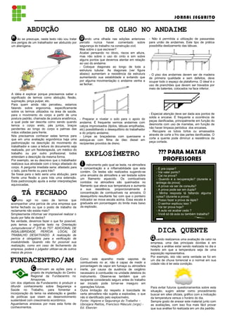 2) Também fornece dicas sobre segurança em andaimes, como usar diagonais para aumentar a estabilidade e verificar soldas e encaixes.