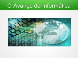 O documento descreve a evolução dos computadores e da internet, desde os primórdios da contagem até as máquinas modernas de hoje. A internet surgiu da ARPANET em 1969 para conectar departamentos de pesquisa nos EUA. Os computadores trouxeram muitas mudanças tecnológicas, facilitando o trabalho e pesquisas das pessoas.