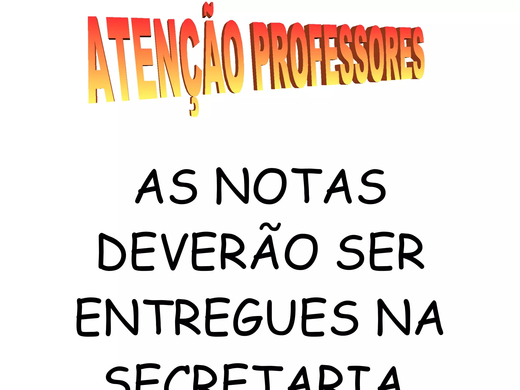 As notas dos alunos precisam ser entregues na secretaria até o dia 4 de outubro. Os professores devem ficar atentos a esta data limite para entrega das notas.