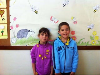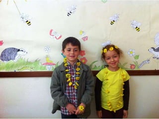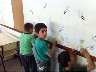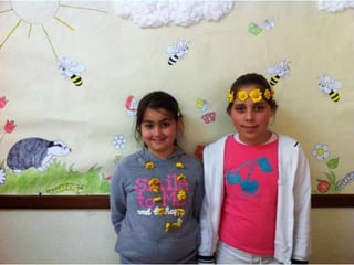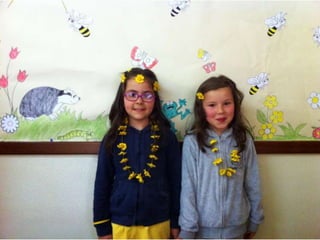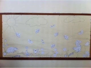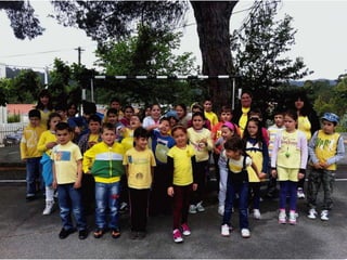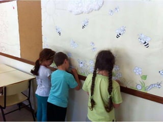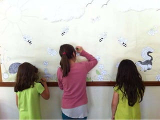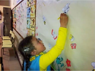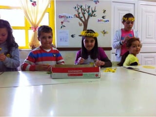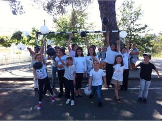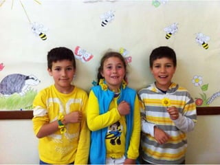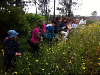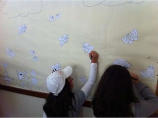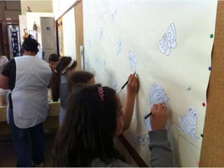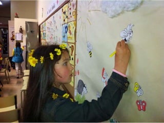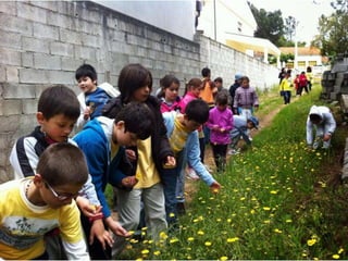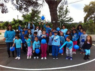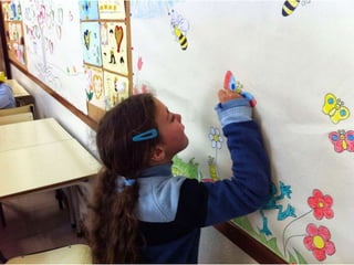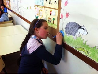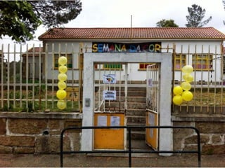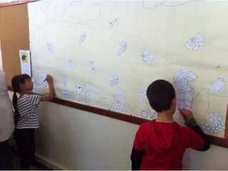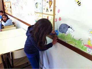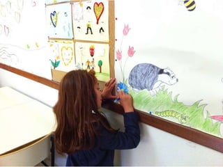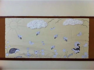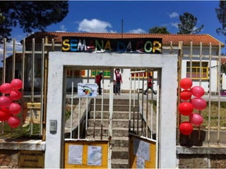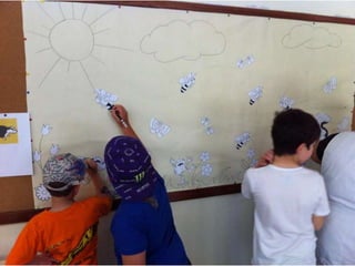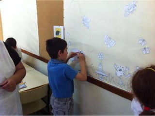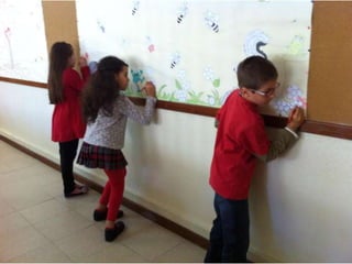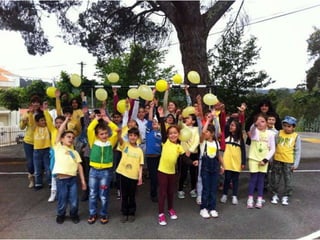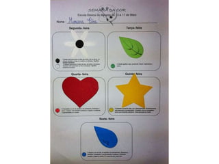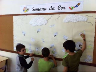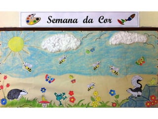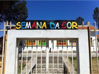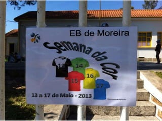 Este documento descreve as atividades realizadas durante a Semana da Cor na escola EB de Moreira em Maio de 2013, incluindo a pintura de um painel e enfeites com malmequeres. Também resume os significados simbólicos associados a cada cor do arco-íris - preto, branco, verde, vermelho, amarelo e azul.