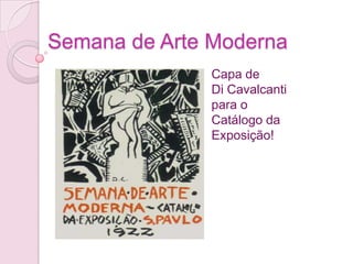 O documento descreve a Semana de Arte Moderna de 1922 no Brasil, um evento que apresentou novas tendências artísticas modernistas ao público paulista, gerando críticas. O documento explica o contexto histórico e cultural do evento e características do movimento modernista brasileiro.