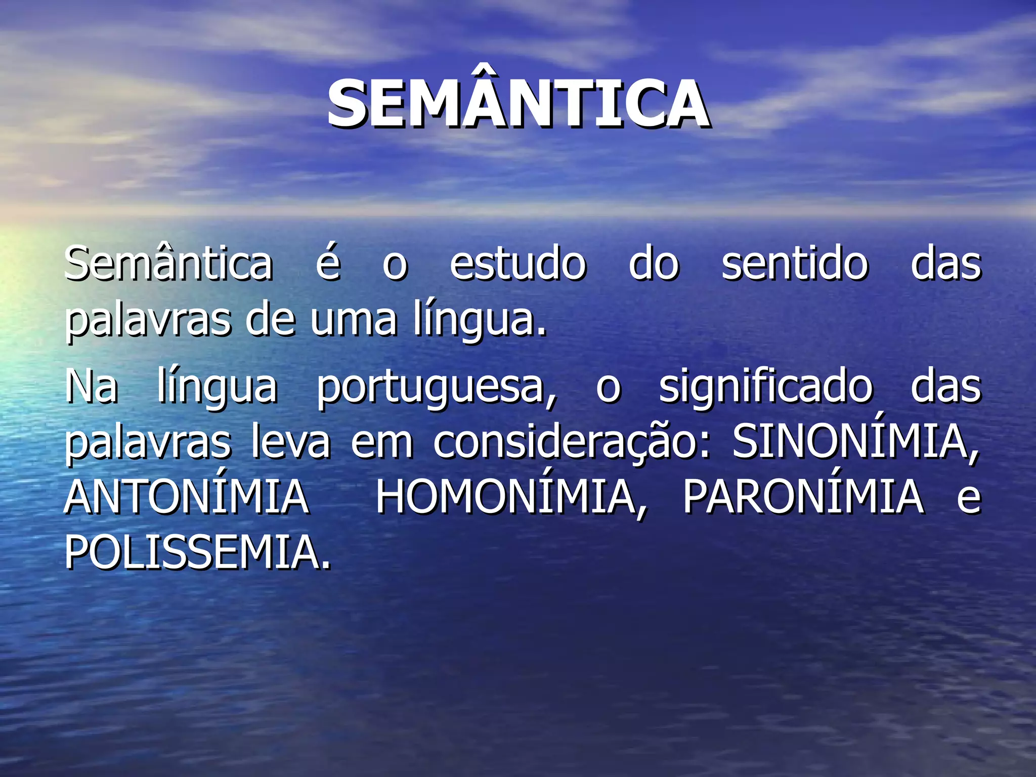 O documento discute os principais conceitos da semântica na língua portuguesa: sinonímia, antonímia, homonímia, paronímia e polissemia. A sinonímia refere-se a palavras com significados iguais ou semelhantes. A antonímia refere-se a palavras com significados opostos. A homonímia refere-se a palavras com a mesma estrutura fonética mas significados diferentes. A paronímia refere-se a palavras muito parecidas na escrita e pronúncia